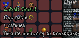 Der Kobaltschild ist mit Kombination der Hermes-Stiefel sehr nützlich, da man mit diesem in der Lage ist, auf einer Himmelsbrücke weiterzulaufen, obwohl man von einem Monster getroffen wurde. Das kann nützlich sein, denn durch diese Methode muss der Spieler Monstern nicht ausweichen oder wieder Anlauf nehmen, sondern kann im gleichbleibendem Tempo weiterlaufen. Außerdem kann der Kobaltschild an der Tüftler-Werkstatt mit dem Obsidianschädel zum Obsidianschild zusammengefügt werden.