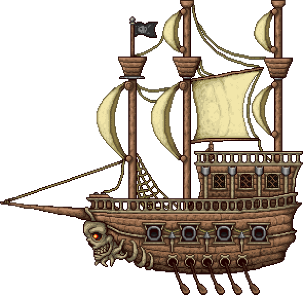 - Советуется браться за уничтожение Летучего голландца как только появится такая возможность (от перехода в хардмод и далее по сюжету), ибо на деле этот босс представляет из себя "огромный летающий лут-бокс", с которого можно получить невероятно полезные предметы, начиная в крайне мощного прислужника и заканчивая самым ранним летающим маунтом. Последний позволит вам с лёгкостью дойти до самого Культиста-Лунатика, где уже лучше сменить Фрегат как минимум на НЛО.